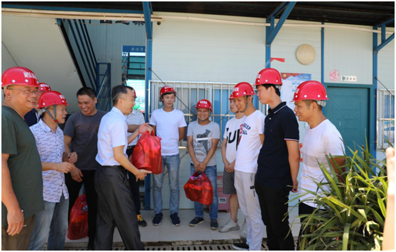 送清涼,亦送溫暖,漆書(shū)記一行代表集團(tuán)工會(huì)為項(xiàng)目辦工作人員送去了組織的關(guān)懷。 每到一處,慰問(wèn)小組都會(huì)仔細(xì)詢(xún)問(wèn)工程的建設(shè)進(jìn)展情況、項(xiàng)目的防暑降溫工作落實(shí)情況和高溫期間的工作安排。漆書(shū)記在現(xiàn)場(chǎng)叮囑大家要針對(duì)高溫天氣,精心組織,科學(xué)施工,合理安排,做好防暑降溫和安全生產(chǎn)工作,切實(shí)保障項(xiàng)目辦工作人員的安全健康。