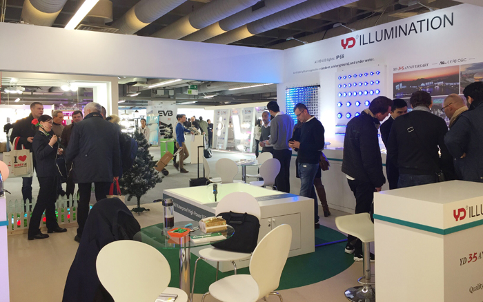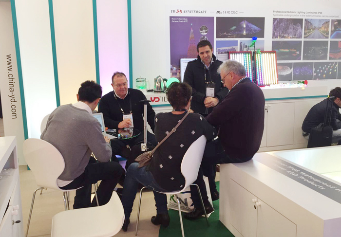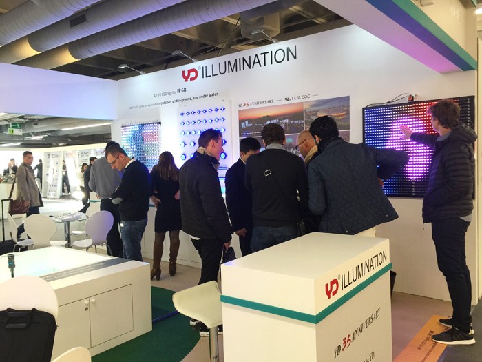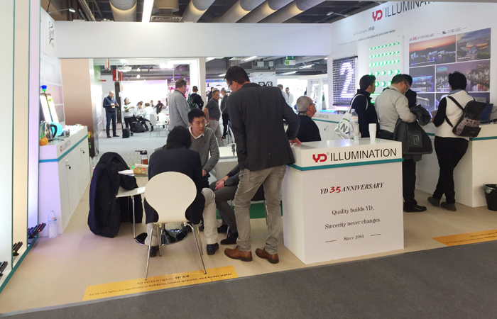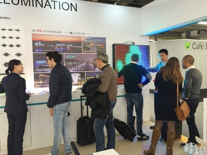 與往年展位不同的是,今年勇電除了展示點(diǎn)光源、線條燈、大功率系列產(chǎn)品外,還將勇電旗下裝飾照明品牌——法拉沃系列燈具帶到了現(xiàn)場,各系列產(chǎn)品布局合理、清晰呈現(xiàn),向參展的客戶展示著優(yōu)勢和吸引力。