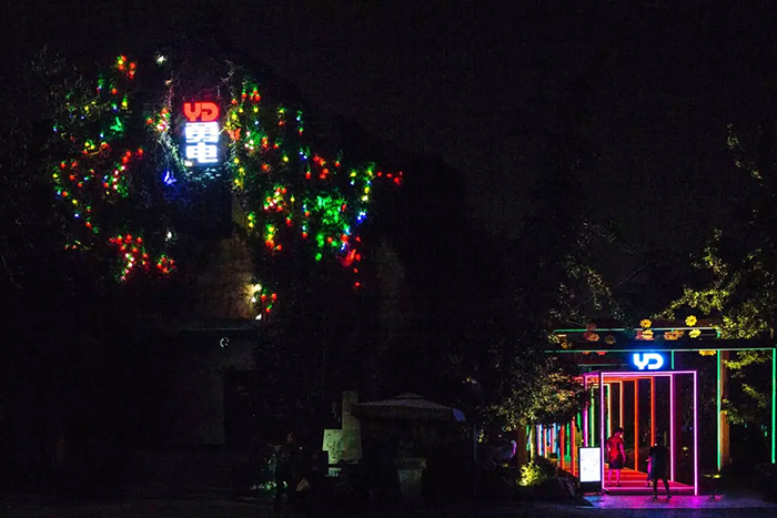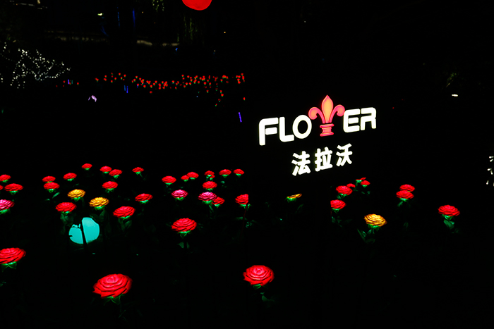燈光秀路口的植物墻上,勇電旗下品牌-法拉沃各類造型燈光點(diǎn)綴其中,盈盈綠意,點(diǎn)點(diǎn)繁星,仿佛它們本就一體,發(fā)出神秘夢幻的光彩。