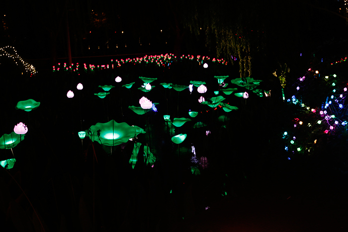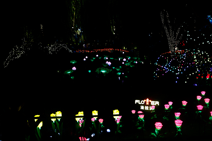 法拉沃造型花燈裝點(diǎn)的池塘夜色,每一處都在釀著各自的魅力。夜晚,在皎白的燈光照耀下,荷花輕盈曼舞,郁金香、馬蹄蓮隨風(fēng)拂動,五彩斑斕的花燈與嬌嫩的綠意,徜徉于自然的清新空氣中,讓人心曠神怡。