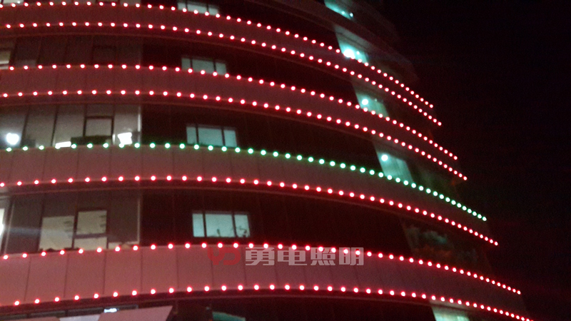 項(xiàng)目立面采用勇電二次封裝Φ50 LED點(diǎn)光源。