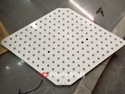 5、沖孔板內(nèi)透安裝:采用整板沖孔這種方式來(lái)安裝led點(diǎn)光源的時(shí)候,通常都是在鋁板或者不銹鋼板上根據(jù)計(jì)算好的位置來(lái)進(jìn)行沖孔,然后再把led點(diǎn)光源從板材的背面穿過來(lái),將其接好線就算安裝完成,這種整板沖孔的安裝方式也是目前比較常用的。