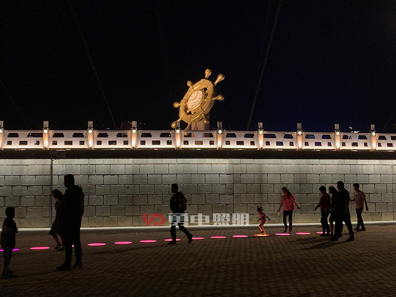 除此之外,在太陽(yáng)島東西兩側(cè)廣場(chǎng)還安裝了特色互動(dòng)燈具,包括互動(dòng)鋼琴、互動(dòng)投影游戲、互動(dòng)圓形地磚燈等,游客可與燈光互動(dòng),感受燈光、享受科技與藝術(shù)融合帶來的視覺享受和體驗(yàn)。