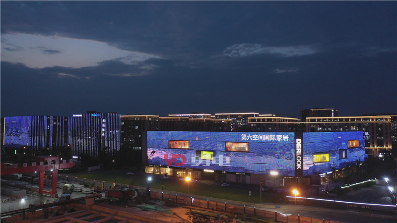 采用勇電高品質(zhì)LED燈具,于商務(wù)用地處打造全彩媒體屏,突出蔣村商圈的標志點、視線走廊,打造高熱度打卡點,聚集人氣。住宅區(qū)則采用柔光燈光設(shè)計,表現(xiàn)住宅建筑頂部天際線,局部以側(cè)面投光的形式表現(xiàn),提升小區(qū)氛圍和品質(zhì)感。