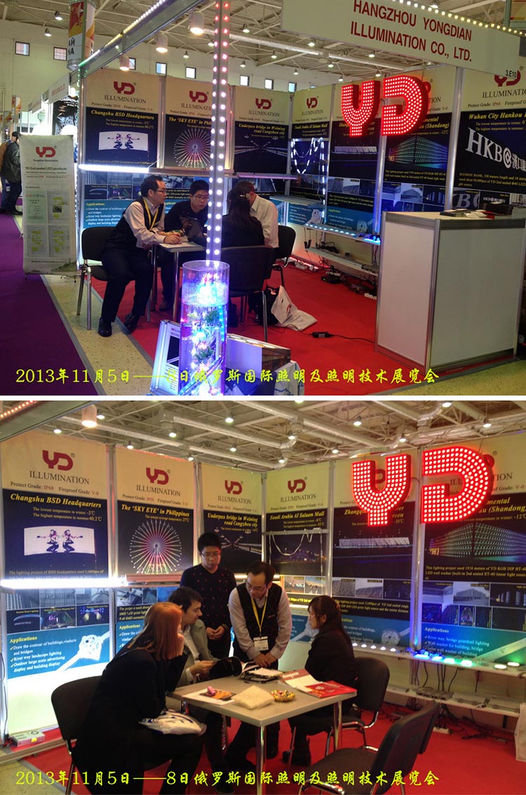 2013年是美好的照明年。我司下半年分別參與了“法蘭克福(迪拜)照明展”、“香港國際秋季燈飾展”、“阿根廷國際燈光照明及建筑技術(shù)展覽會”、“俄羅斯國際照明及照明技術(shù)展覽會”、“印度國際LED照明展覽會”;其中印度展將于12月19-21日在新德里拉開帷幕,歡迎蒞臨參觀。