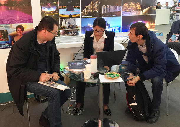 開(kāi)展當(dāng)天,勇電照明展位前來(lái)洽談的客戶絡(luò)繹不絕