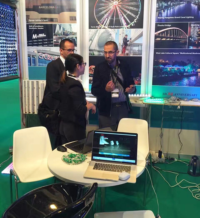 展會(huì)期間,勇電照明展廳人氣高漲,眾多國(guó)外觀眾和專業(yè)人士駐足詢問(wèn),勇電工作人員全程悉心接待與講解,詳細(xì)介紹了勇電照明燈具的特點(diǎn)及優(yōu)勢(shì),并回答了客戶關(guān)于不同類型燈具選購(gòu)、安裝和維護(hù)的問(wèn)題,使得客戶對(duì)勇電照明產(chǎn)品有了更深的了解。