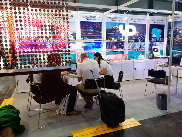 該網(wǎng)屏內(nèi)置勇電二次封裝LED點(diǎn)光源,其優(yōu)勢(shì)在于易安裝、易維修、易運(yùn)輸,展會(huì)現(xiàn)場(chǎng),客戶就網(wǎng)屏結(jié)構(gòu)設(shè)計(jì)與供應(yīng)、工程應(yīng)用等話題進(jìn)行了深入的了解。