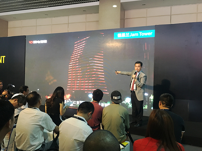 會上,Steve Lau著重向聽眾介紹了勇電智能燈光控制系統(tǒng)以及體感互動控制系統(tǒng),并通過伊朗ARG商業(yè)中心這個項目,講述了燈光和人體動作在實時動畫生成軟件作用下的協(xié)調(diào)一致性。