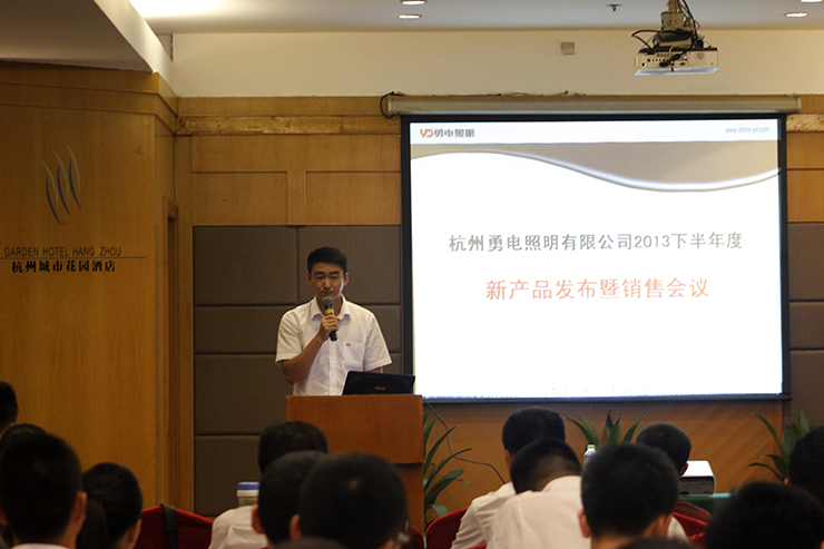 2013年7月28日,杭州勇電照明有限公司以主題為“勇電照明2013年下半年新產(chǎn)品發(fā)布暨銷售會議”在杭州城市花園酒店拉開了帷幕。參加會議的有勇電照明公司領(lǐng)導(dǎo)、代理商、各分公司代表及銷售人員。