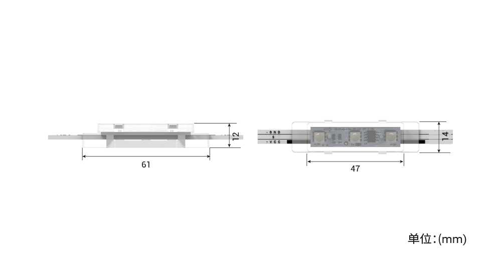 | 02 | DC12V | 0.5W | 單色 | SPI | 15.5cm | 110° |